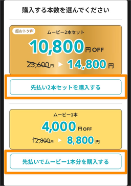 先払いの時点では、「ムービーを1本だけ作るか、2本セットでお得に作るか(購入本数)」だけ決まっていれば大丈夫です!